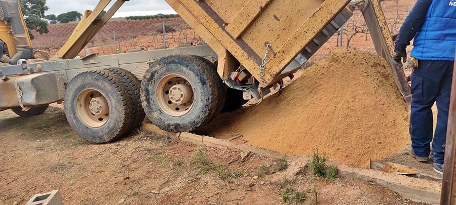 Der Boden mit Sand aufgefüllt um einen Betonübergang zu schaffen.