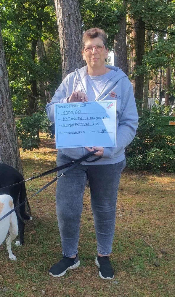 Am Ende wurden die Einnahmen des Festivals auf verschiedene Tierschutzvereine aufgeteilt, und die Nothunde gehörten zu den Begünstigten. So konnte unsere Astrid einen Scheck über sage und schreibe 1.000 Euro entgegennehmen!