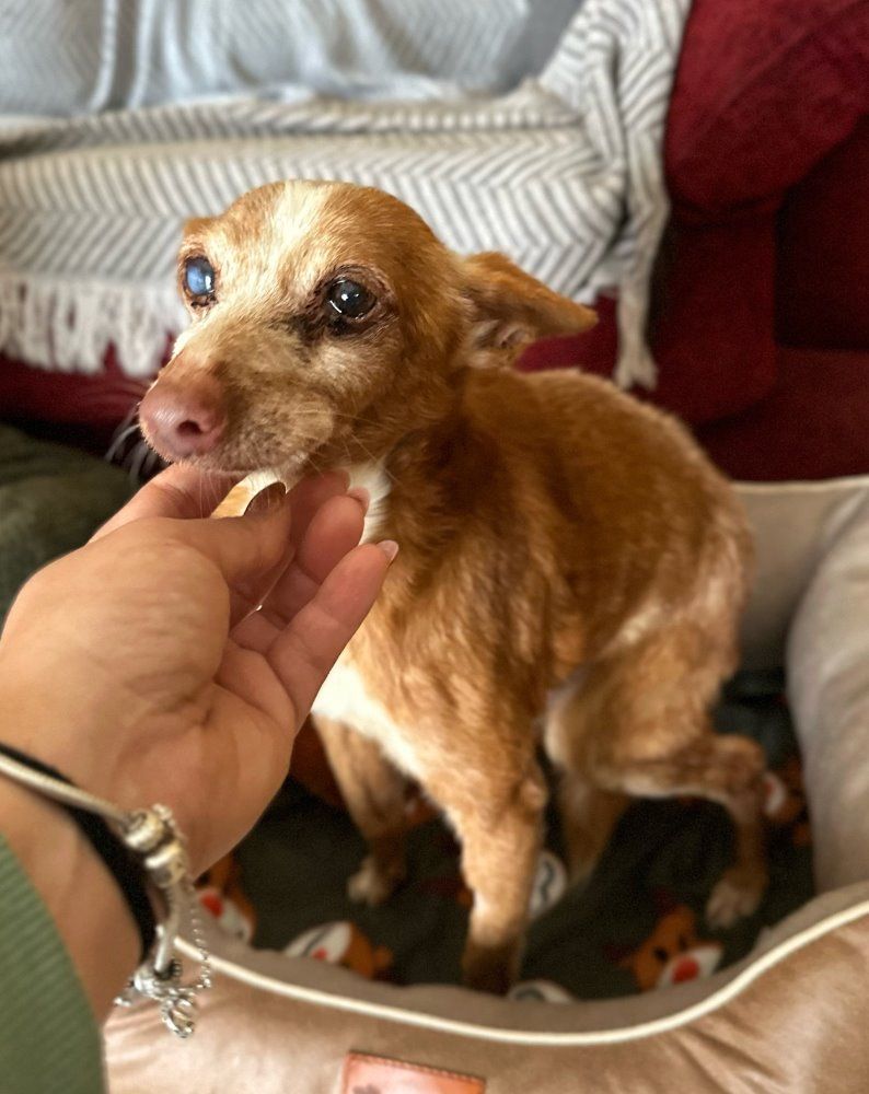 Inzwischen hat er sich erholt und zeigt, was für ein Schatz er ist: liebevoll, sanft und ruhig. Er kommt gut mit anderen Hunden und Katzen zurecht und möchte nur einen warmen, gemütlichen Platz, wo er sich einkuscheln kann und idealerweise auch noch gestreichelt wird.
