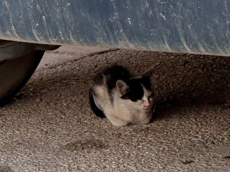 Mochi wurde auf der Straße gefunden, wo er sich unter einem Auto versteckte – ein gefährlicher Ort für Katzen, die oft versehentlich oder sogar absichtlich überfahren werden oder einen entsetzlichen Tod unter der Motorhaube sterben, weil sie in kalten Nächten in den Motorraum klettern, um die Restwärme auszunutzen.