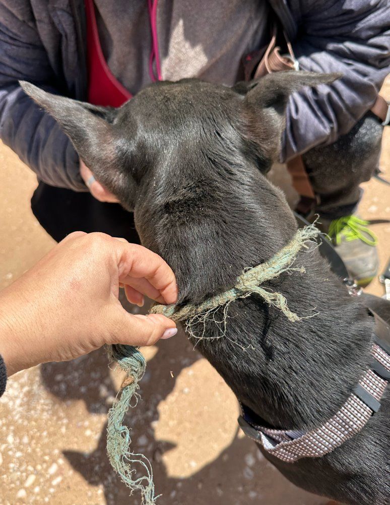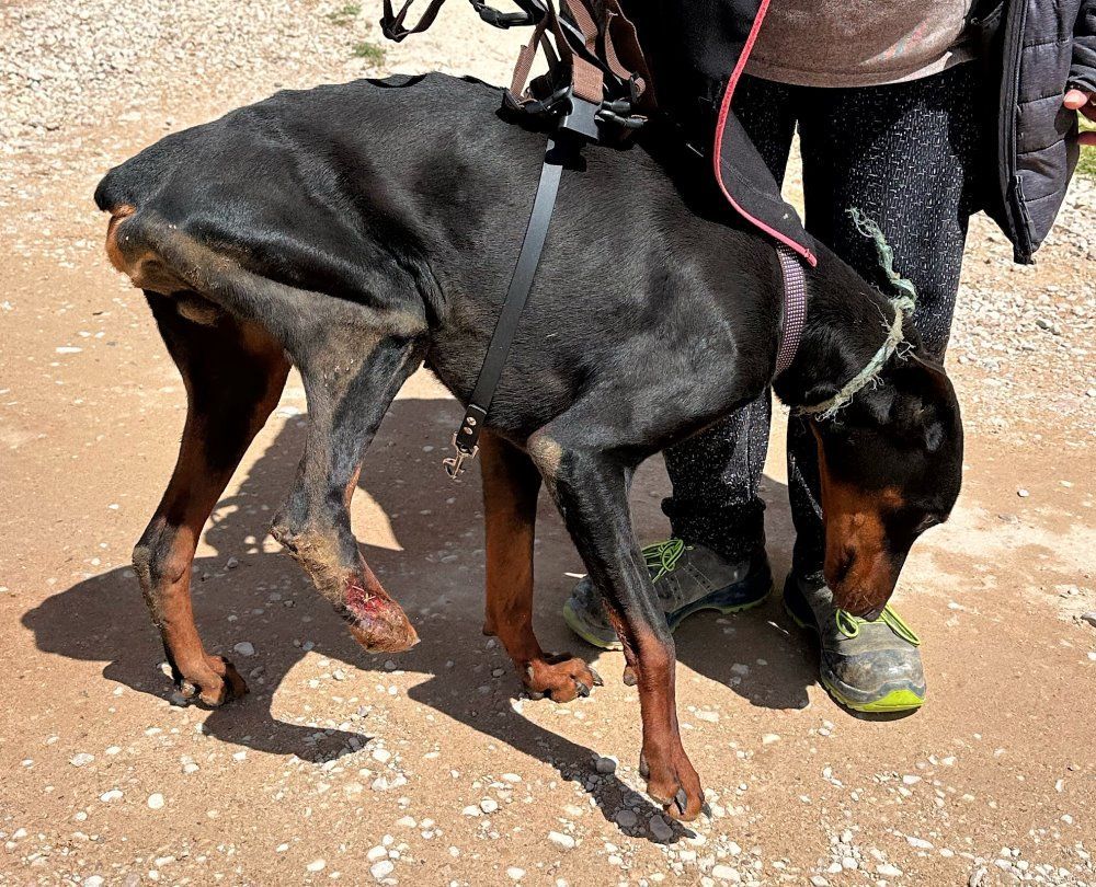 Doch jemand hat den Hund gesehen, als er auf der Straße umherirrte, und die Animaleas informiert. Die begeben sich nun auf die Suche nach dem Hund und sehen ihn schließlich. Doch sie kommen nicht an ihn heran. Sie schalten die spanische Tierschutzbehörde ein, die den Hund beschlagnahmt und in die Obhut der Animaleas übergibt. Erst jetzt sehen sie, was mit seinen Hinterbeinen nicht stimmt: Eins ist fast bis auf den Knochen aufgescheuert und entzündet, sodass sich bereits Maden in der Wunde tummeln.